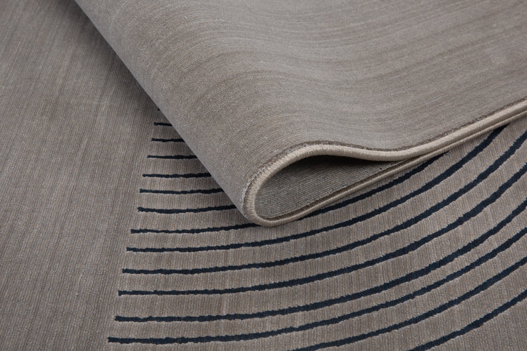 Against a stone white with subtle grey hues background, the sleek black lines create a striking visual contrast, adding a sense of dynamism and sophistication to your living space. The diagonal arrangement introduces a dynamic energy, giving the rug a unique and eye-catching appeal.