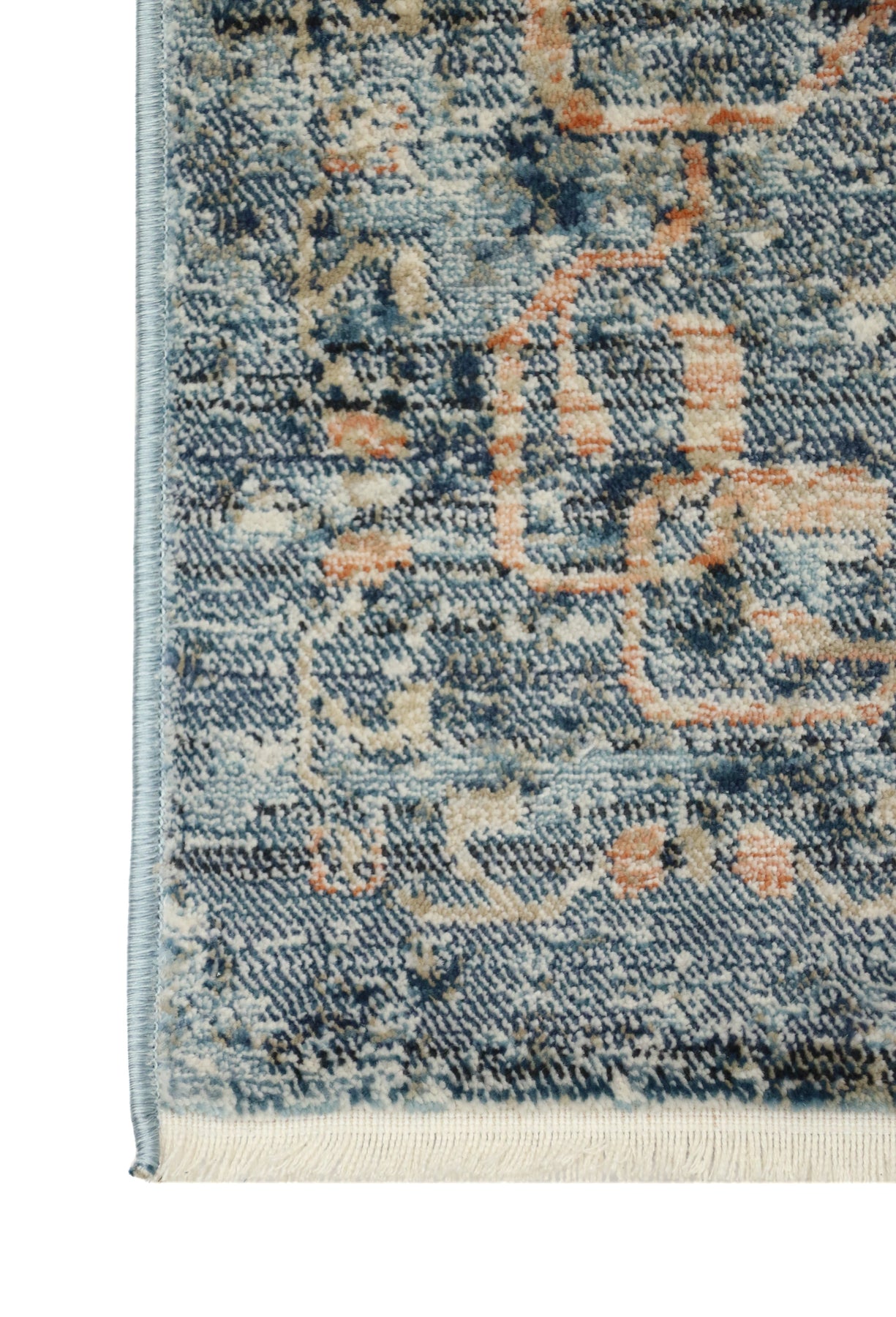 Regular price $30.00USD Save $-30.00USDThis blue base transitional rug has a mix of coral peach tones, cream and rich blues. With the distressed pattern predominantly consisting of rich blues, this rug will fit neutral toned spaces, adding a gorgeous pop of colour to your space.