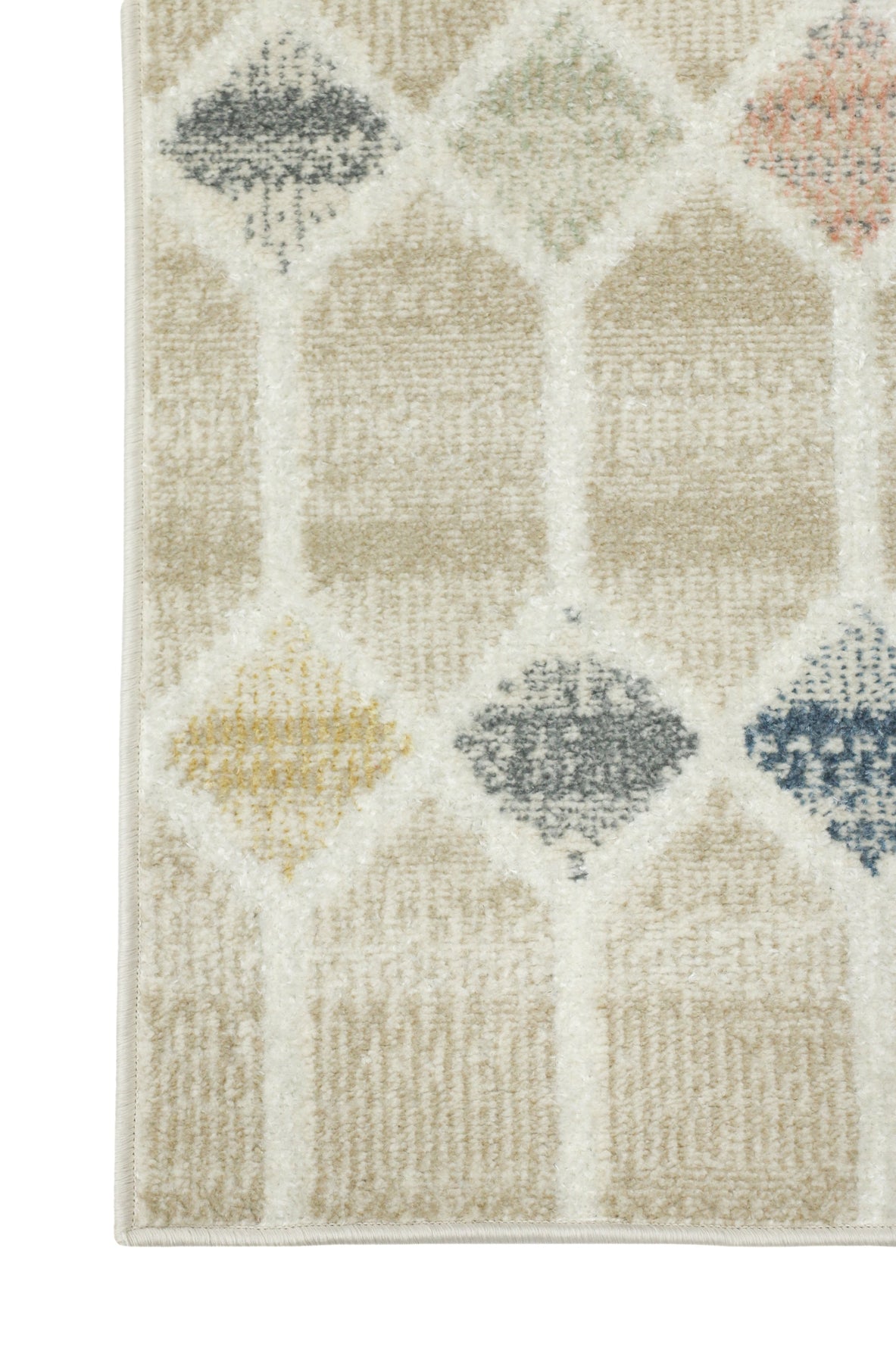 Colors in this design include: beige, cream, blue, blue-grey, pink, pale yellow, rust orange.
